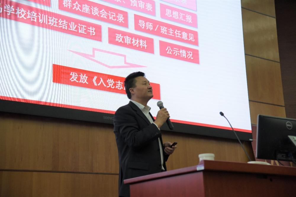季自军为星火培训班学员介绍了入党流程,强调了申请人、积极分子、发展对象、预备党员、正式党员几个重要身份的转变和意义,嘱托学生们不仅要在行动上入党,更要在思想上入党。