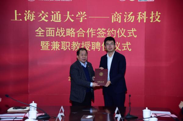 林忠钦为徐立颁发兼职教授聘书。基于已有联合实验室良好的合作基础,依托教育部产学合作协同育人项目,未来上海交大和商汤科技将共同探索人工智能高端人才联合培养机制,选拔并输送上海交大优秀学生前往商汤进行实习实训,接触行业前沿,通过指定商汤科技优秀研究员作为企业导师,进行校企联合培养。徐立担任兼职教授对优秀学生有很好地激励作用和示范效应。