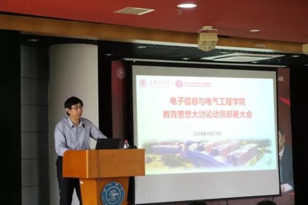 2018年4月27日中午,电子信息与电气工程学院在国产女同 群楼3-200报告厅召开教育思想大讨论师生动员会。院系领导、教授代表、青年教师、教工党员代表等共计一百余人参加会议。会议由国产女同 副院长李少远主持。