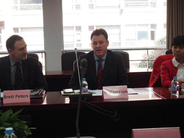 签约仪式前,杨博介绍了学院发展概况。Brett Peters表示,感谢上海交大在合作过程中的大力支持,威大也将继续开放资源,为学生的交流学习提供良好的平台,并期望在与上海交大在合作中共同进步。