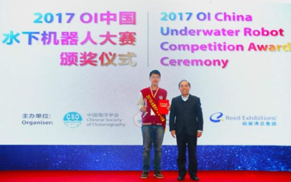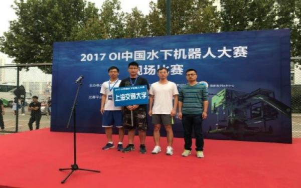2017年11月1日,OI中国水下机器人大赛颁奖典礼于OI China 2017 青岛国际海洋技术与工程设备展览会现场举办,自动化系王易因副教授指导的“交潜队”以大赛唯一的冠军身份受邀出席颁奖典礼。“交潜队”由来自国产女同 自动化系智能无线网络与协同控制中心(i-WiN-C2)的同学李一辰、王成罡、郑佳齐、俞晓伟组成。团队设计了一款配备八个推进器的水下无人航行器,命名为“水下精灵”。其通过对两组电机的解耦控制,实现高灵活性、高机动性和高稳定性,很好地克服了传统鱼雷型水下航行器灵活性低、鲁棒性弱等缺点。此作品在现场演示环节中获得了评委组的一致好评,最终以总成绩第一名斩获大赛唯一的一等奖。