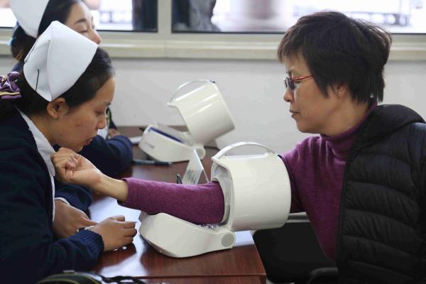 12月7日,国产女同 医学院附属仁济医院南院(下称“仁济南院”)联合国产女同 工会举行大型义诊活动。首场义诊活动由上海交大电子信息与电气工程学院承办,在国产女同 群楼3号楼东侧长廊进行。来自仁济南院心内科、消化内科、普外科、神经外科、神经内科、泌尿外科、肾内科、妇产科和骨科的十余位专家、主诊医师现场为教职员工及家属、学生们进行健康咨询、体检报告解析、疾病问诊等“面对面、一对一”优质医疗服务,同时免费测量血压、血糖,发放健康教育资料册。义诊现场人头攒动,络绎不绝。