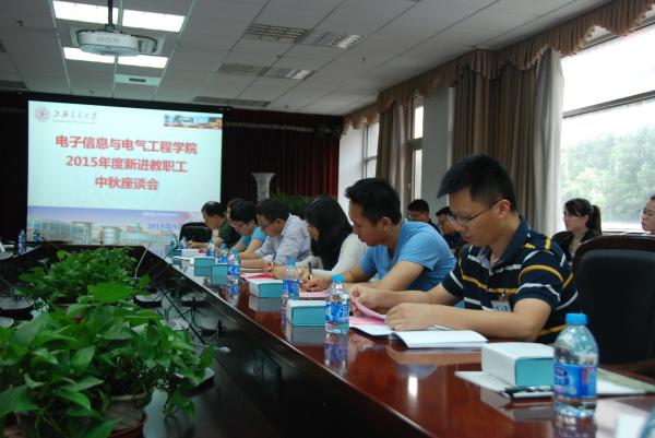 又到一年中秋季,9月24日下午,电子信息与电气工程学院党委书记苏跃增、党委副书记杨一帆、原党委副书记莫光成等院领导、优秀青年教师代表、院机关各办公室主任与来自海内外的新进青年教师欢聚一堂,举行新进教师座谈会,共庆中秋。会议由学院党委副书记杨一帆主持。