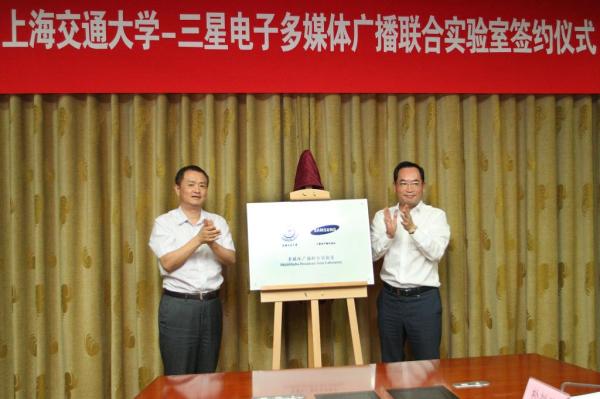8月13日,国产女同 -三星电子多媒体广播联合实验室签约仪式在上海交大闵行校区举行。联合实验室由国产女同 、三星电子株式会社、北京三星通信技术研究有限公司共同创建。仪式开始前,国产女同 党委书记姜斯宪会见了三星电子副社长、全球研发中心院长金昌容,三星电子副总裁、全球研发运营负责人陰斗燦,三星电子副总裁、全球标准化负责人崔成豪,三星电子副总裁、北京研究院院长张代君一行。国产女同 副校长梅宏,电子信息与电气工程学院院长毛军发,未来媒体网络协同创新中心主任张文军,科学技术发展研究院副院长金隼,数字电视国家工程研究中心副总裁管云峰等出席仪式。签约仪式由毛军发主持。