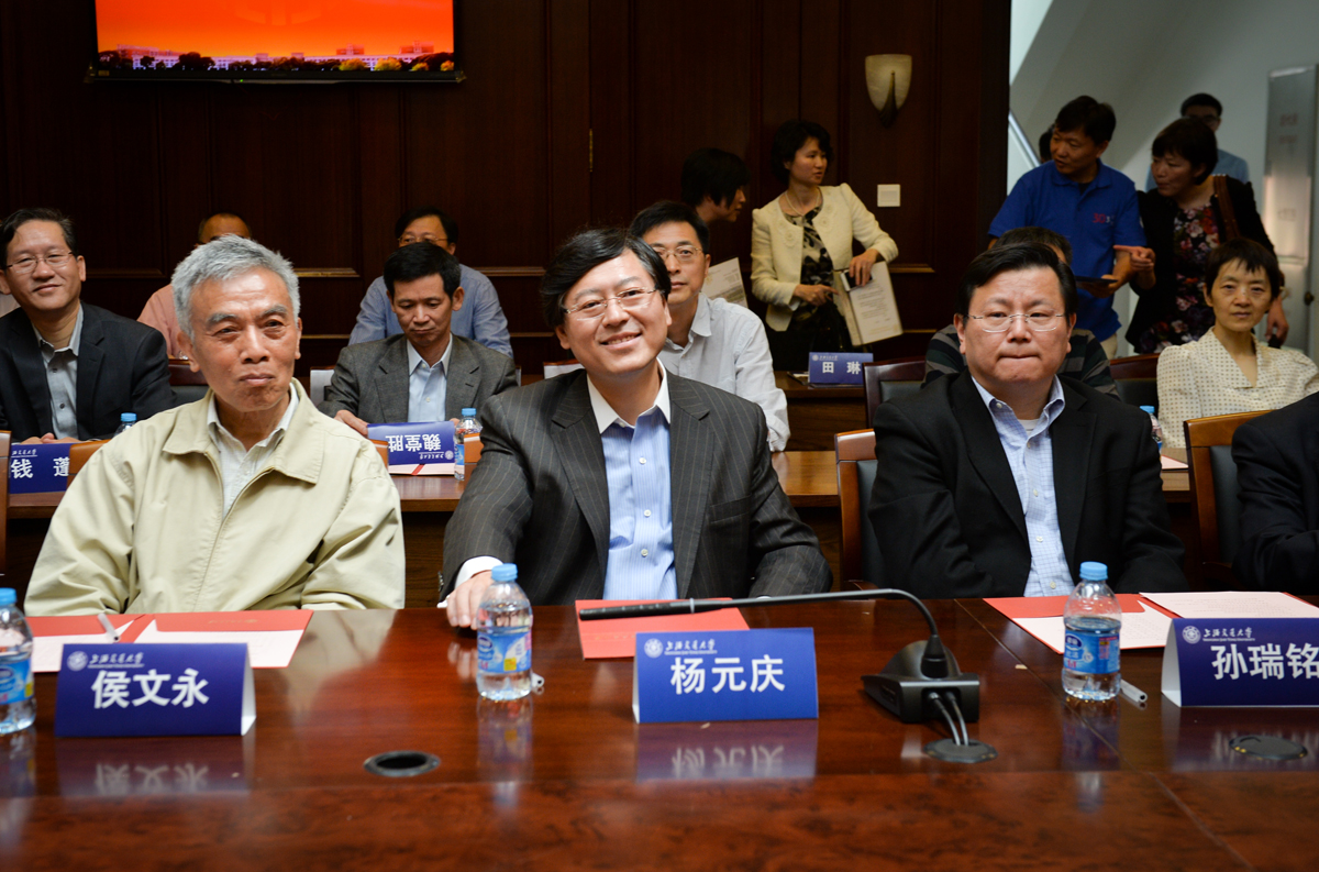 张安胜同杨元庆签署杨元庆教育基金捐赠协议。姜斯宪代表学校向杨元庆致送捐赠证书、感谢状和纪念品。