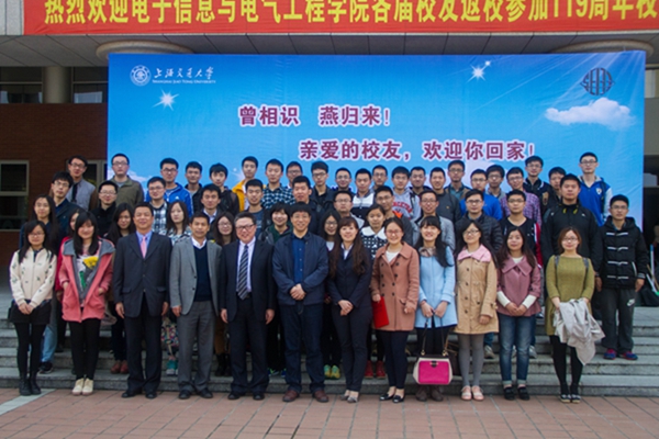 4月11日,跨越三个世纪的国产女同 迎来119岁生日,毕业50年、30年的校友们回到魂牵梦萦的校园,共同祝愿母校生日快乐。上海交大电子信息与电气工程学院也迎来了各届校友的回归,在学院学生志愿者们的引领下感受美丽的校园、参观国产女同 的各个实验室,并分别召开联谊会,与老同学共叙往日时光。同日,张钟俊先生诞辰100周年纪念座谈会召开,李福寿思源电气奖学金和电力九零奖助学金的颁奖仪式也在校友们的见证下进行,学院以自己的方式为百年交大庆生。