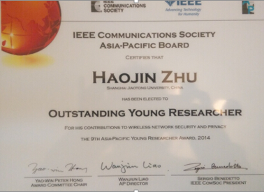 这两个奖项的颁奖仪式都于2014年12月在IEEE全球通信会议(Globecom)上举行。朱浩瑾副教授在本届IEEE GLOBECOM上同时获得最佳论文奖提名(Best 50 Paper)