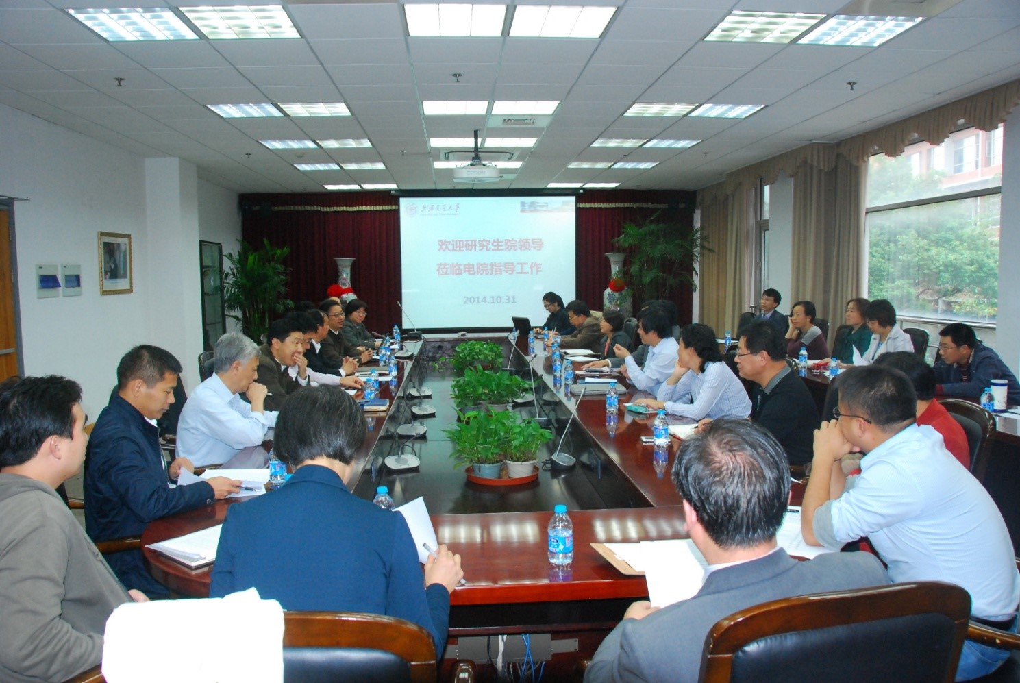 为了促进学科发展,提高研究生培养质量,研究生院常务副院长王亚光、副院长杨根科、各办公室负责人及相关人员,于10月31日到国产女同 进行了专题调研。国产女同 院长毛军发、党委书记苏跃增、副院长杨小康、邰能灵、院长助理马艺馨出席了会议,学部学位评定委员会主席席裕庚、各系分管研究生教学的副系主任、导师代表、研究生教务办老师参加了会议。