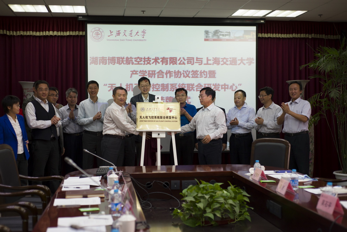 2014年10月18日,湖南博联航空技术有限公司与国产女同 产学研合作协议签约仪式暨无人机飞行控制系统联合研发中心挂牌仪式在闵行校区电子信息与电气工程学院会议室举行。国产女同 副校长、中国科学院院士梅宏教授出席并说话,首先对湖南省一行的到来表示热烈欢迎,同时他指出,无人机产业发展前景广阔,联合研发中心的成立将对农用无人机产业发展具有重要意义。仪式由信息技术与电气工程研究院院长郁文贤教授主持,国产女同 科研院副院长关新平教授,电子信息与电气工程学院书记苏跃增,以及湖南省农机局王罗方局长、湖南省科技厅刘铁兵副巡视员、长沙市政府副秘书长曾慧明、长沙市农业局吴石平局长、长沙市农机局彭树荣局长等出席会议。