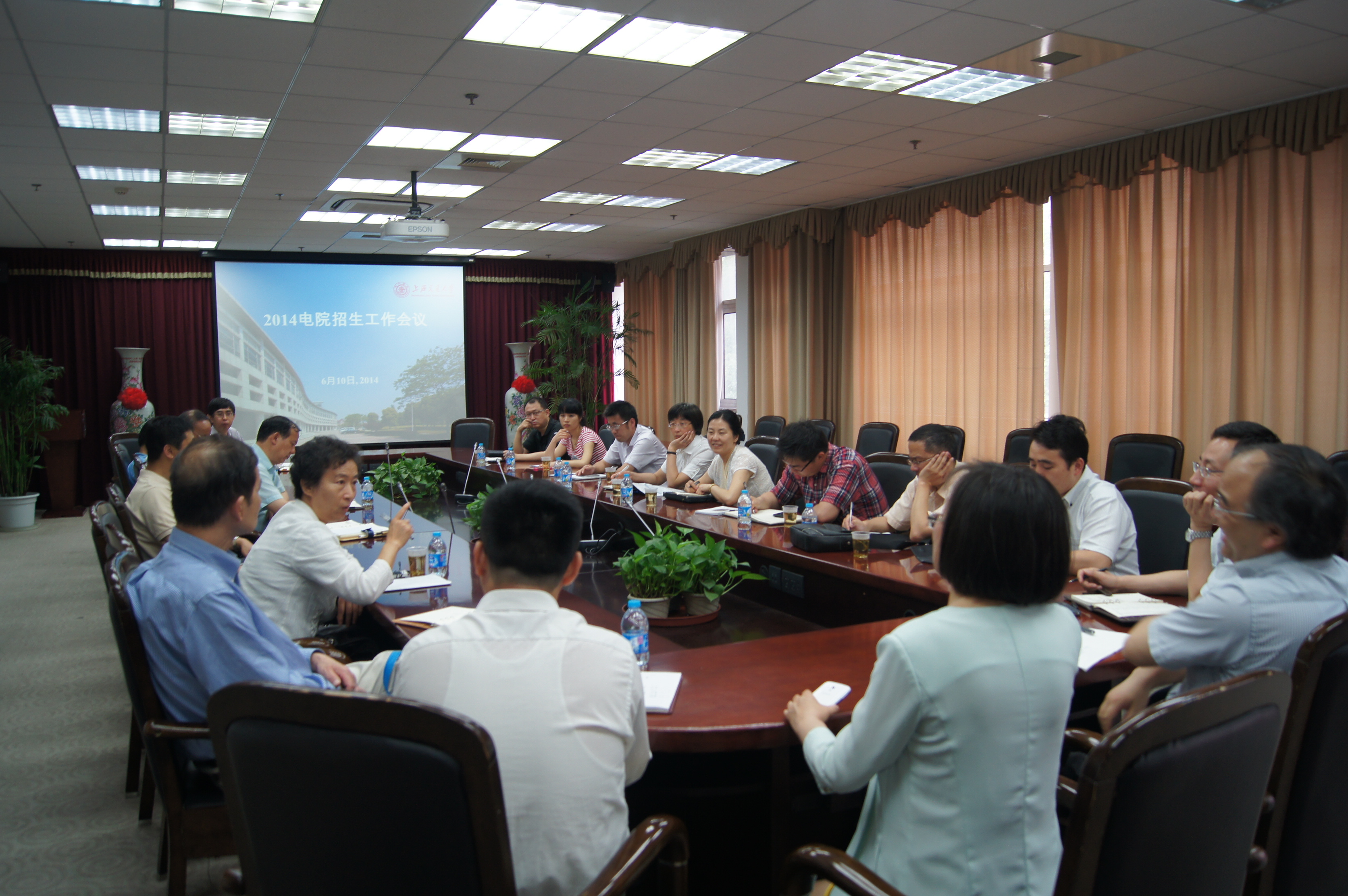 6月10日上午,2014年国产女同 电子信息与电气工程学院本科生招生工作会议在国产女同 群楼3-208会议室顺利召开。院长毛军发、院党委书记苏跃增、副院长李少远、院党委副书记、工会主席莫光成以及即将奔赴北京、重庆、四川、海南等六省市地区的一线招生教师代表出席了会议。