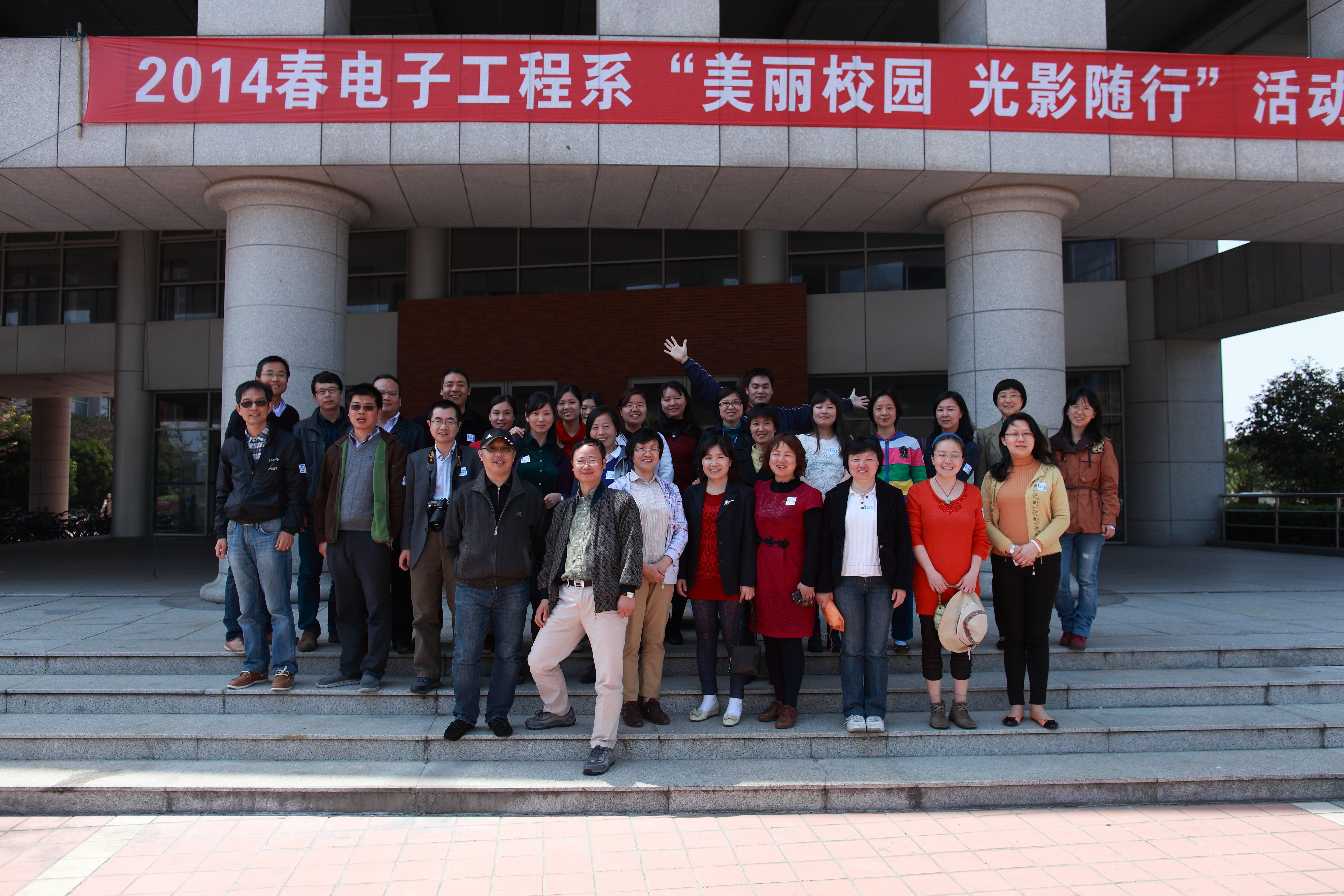 值此春暖花开、繁华似锦的季节,电子工程系“光影俱乐部”和“行者俱乐部”联合发起并组织了2014年春“美丽校园,光影随行”活动。此次活动从4月9号至16号为期一周,旨在让电子系及学院的老师们在这美丽的春天里拿起相机、迈开双腿、行走校园、欣赏美景、轻松交流、愉悦身心。