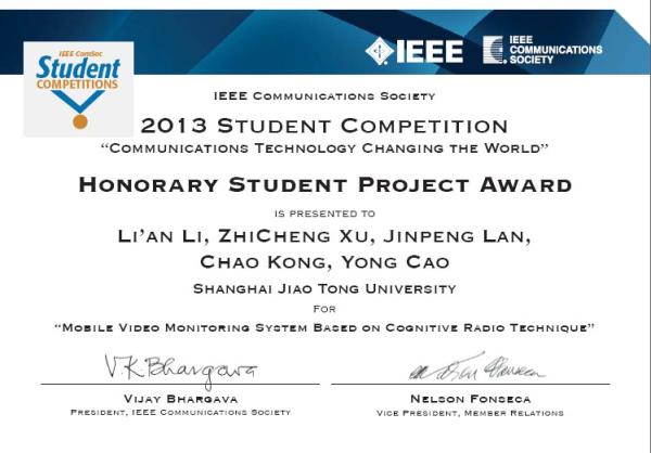 我院学生在“2013 IEEE通信学会学生竞赛”中获佳绩