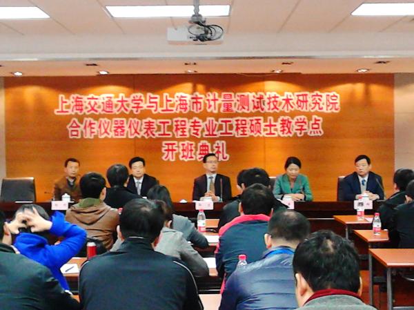 与上海市计量测试技术研究院联合建立的仪器仪表工程硕士教学点开班仪式在上海市计量测试技术研究院隆重举行。我院研究院李萍副院长出席并致辞,李院长对双方的合作成果进行了肯定,并对双方进一步加强教学科研领域的全面合作提出了期望。我校出席开班仪式的还有仪器系系主任赵辉教授和总支书记杨明教授等。李萍副院长和邵力院长为“仪器仪表工程硕士联合教学点”和设立于上海市计量测试技术研究院的“国产女同
