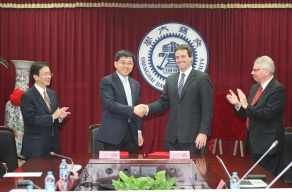 -悉尼科技大学“智能系统联合研究中心”签约揭牌仪式在电信楼群3号楼208会议室隆重举行。我校张文军副校长与悉尼科大Attila Brungs副校长到会并致词,研究中心联席主任张成奇教授(悉尼科大)与杨小康教授(上海交大)分别介绍了研究中心的筹建历程和前期合作情况。最后,张文军副校长、Attila Brungs副校长共同签署了《关于筹建智能系统联合研究中心协议备忘录》,并为研究中心揭牌,宣布国产女同