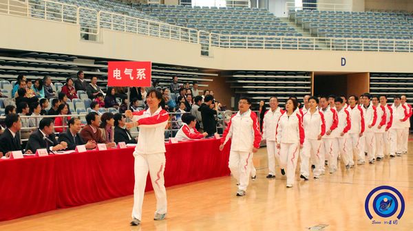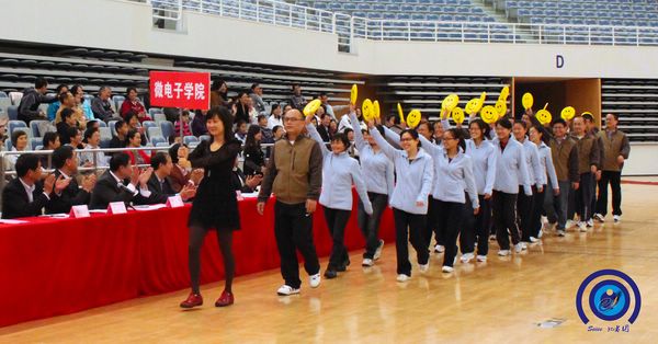 金秋十月,秋高气爽。为贯彻《全民健身计划纲要》,增强全体教职工身心素质,丰富校园文化生活,促进和谐家庭建设,经过一个多月的精心策划和组织,10月29日,电子信息与电气工程学院2011年教职工运动会在闵行校区新体育馆隆重开幕。国产女同 党委书记张安胜致开幕词,校工会主席贾金平致贺词,国产女同 常务副院长毛军发宣布运动会开幕。开幕式由国产女同 工会主席莫光成主持。信息技术研究院院长郁文贤、校工会副主席张杰、体育系徐宝庆书记、毛丽娟主任,各系(中心)领导、信安学院、微电子学院领导,各单位教职工及家属500余人出席了开幕式。