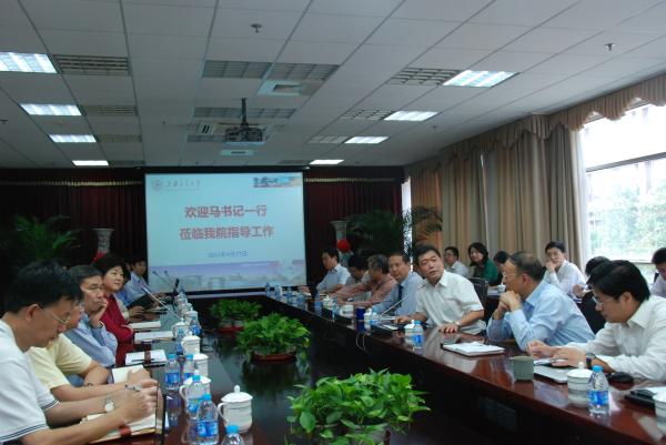 9月27日下午,党委书记马德秀一行专程到电子信息与电气工程学院就大电类改革的进展情况以及学院改革发展中的问题进行专题调研。副校长张文军、党 委常委李建强,以及党办、校办、组织部、改发室、研究生院、教务处、科研院、211/985办、人力资源处、规划发展处、实验室与设备处等相关部处负责同志参加了调研。